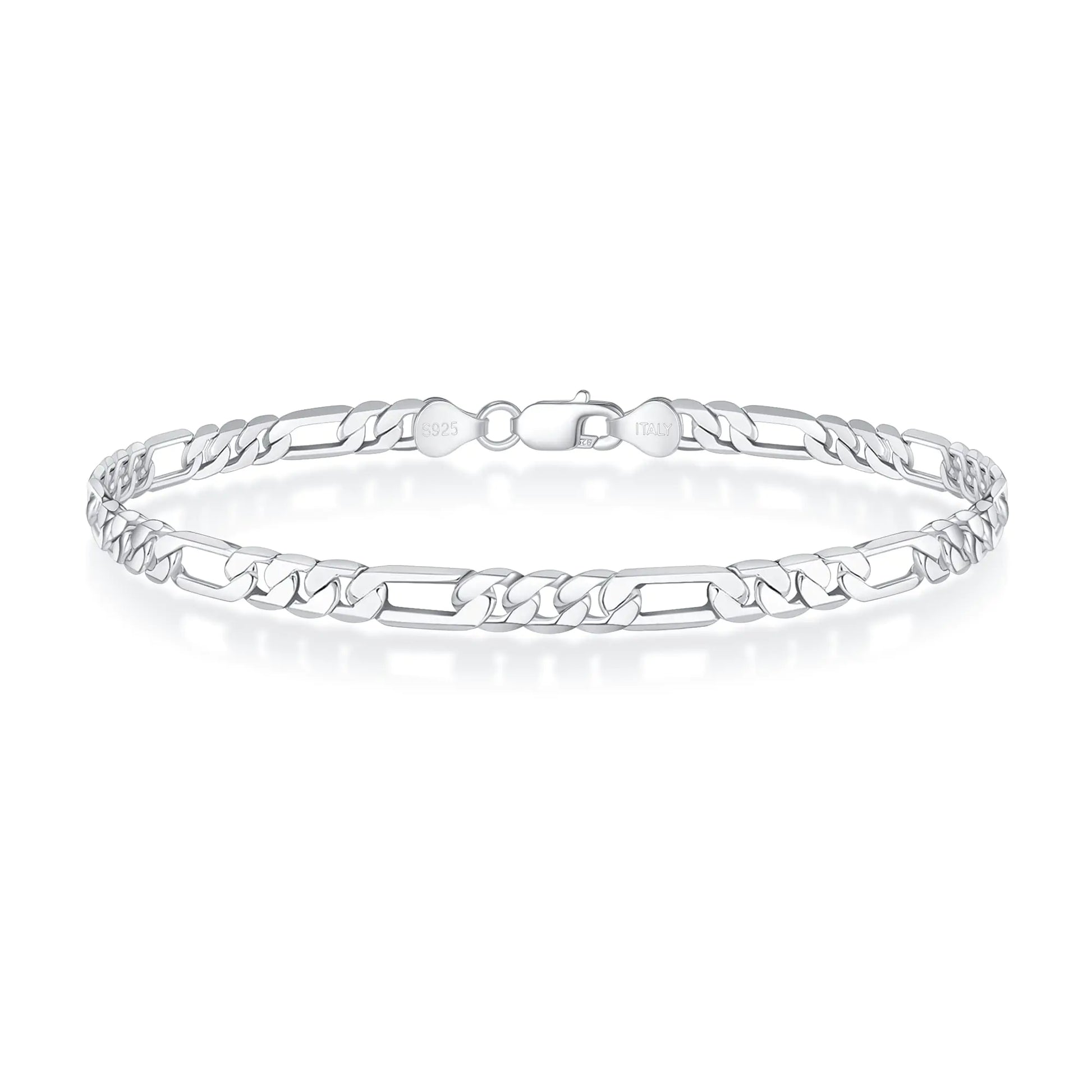 ★★★★★[STERLING SILVER CLASP CHIAN FOR MEN BRACELET - Solid 925 sterling silver clasp 4mm silver Figaro chain bracelet Italian craftsmanship gives this classic mens chain bracelet the most fashionable feel this classic style silver mens bracelet is a perfect jewelry for men to get a fashion look. This silver mens bracelet can wear simply or layering with other bracelet or wrist jewelry will also get a popular trends. Perfect Figaro chain bracelet for men jewelry collection. CLASSIC SILVER BRACELET FOR MEN - As a high-end jewelry material silver has existed for thousands of years. From ancient times to the present silver jewelry has had a wide and far-reaching influence and wearing silver jewelry for a long time also has certain benefits in relieving anxiety. Sterling silver clasp is lead free and nickel-free making this suit for any sensitive skin. A perfect material to make a beautiful chain bracelet and jewelry for men. "GIFTS FOR MEN JEWELRY - A precious metal that can be used for a variety of purposes giving anyone who wears it a sparkle in a crowd and an eye-catching lustre. You cant go wrong with silver jewelry. This classic silver bracelet is the perfect gifts for men husband son men dad brother.... Give them a new fashion style different from other jewelry." UNIQUE MENS SILVER BRACELET JEWELRY- Diamond cut crafts classic Figaro chain bracelet for men wear high polishing crafts makes the silver bracelet smooth and brighter than others. A perfect jewelry for men wear or as a gift. AFTER SALE SERVICE - If there are any problems with the Figaro chain bracelet please feel free to contact us.Questions or concerns regarding the order will be answered within 24 hours.]